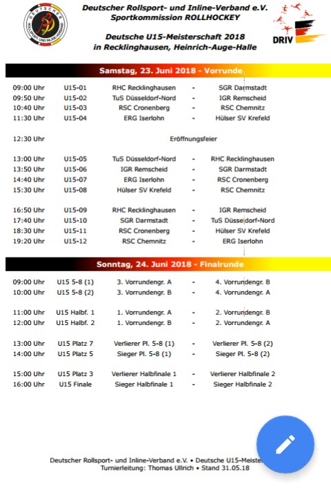 Deutsche Meisterschaft U15 am 23.06. + 24.06.2018 in Recklinghausen