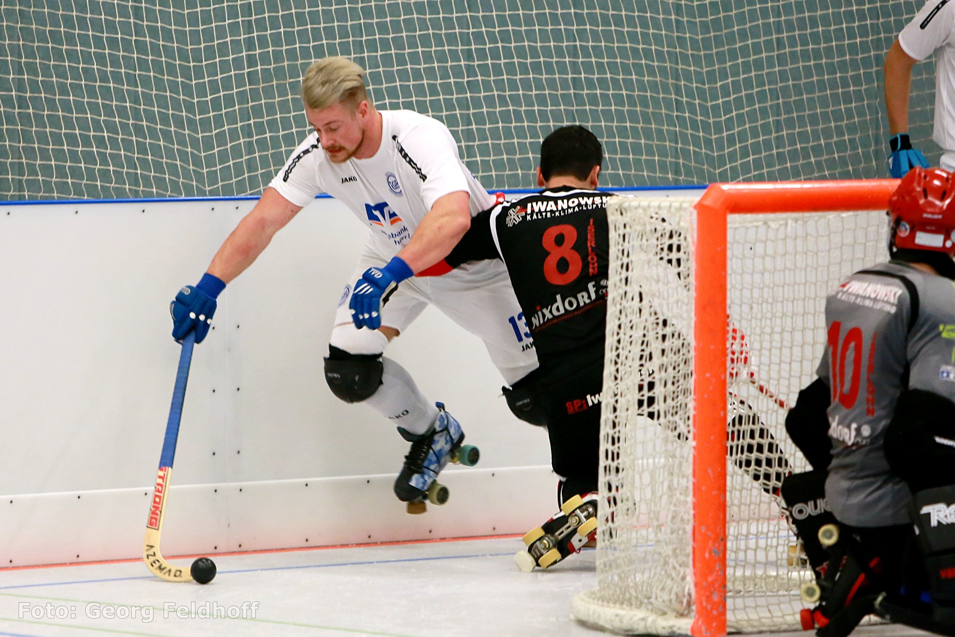 Im zweiten Durchgang ließen sich die Iserlohner wieder nicht bitten. Erneut war es Timon Henke, der die zweite blaue Karte gegen Kai Riedel ausnutzte und für seine Farben auf 3:1 erhöhte. Die Remscheider fingen an über die gesamte Fläche zu pressen, fanden aber keinen Zugriff auf Spiel oder Gegner. Zu groß waren die Passsicherheit und die Spielkontrolle der ERGI. Dies gipfelte in der 40. Minute, als Sergio Pereira nur unzureichend attackiert wurde und einen Distanzschuss genau links oben im Tor unterbrachte – 1:4 und quasi die Vorentscheidung. An Chancen wieder heranzukommen mangelte es den Remscheidern freilich nicht, nur war der letzte Abschluss oder der letzte Pass nicht genau genug und manchmal fehlte schlich das Quäntchen Glück. In der 48. versäumte Ober es nach dem 10. ERGI-Teamfoul das Spiel eventuell noch einmal spannend zu machen. Yannik Lukassen traf zwar danach noch einmal zum 2:4, das war aber auch der Schlusspunkt. In einem mittelmäßigen, von Kaderausfällen geprägten Spiel sicherte sich die ERGI drei Punkte und schiebt sich aktuell auf Rang 2 der Tabelle, die Bergischen verharren weiterhin mit drei Punkten auf Rang 6.