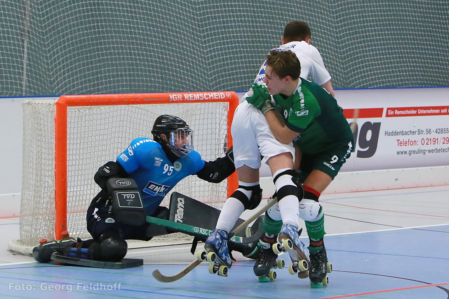 Nach dem Seitenwechsel kam wieder Spannung in die Partie. Niko Morovic verkürzte für die Löwen, die nun das Momentum auf ihrer Seite hatten (30.). Nur eine Minute später hätten sie sogar ausgleichen können, doch wieder Molet scheiterte nach blauer Karte gegen Strieder, ebenso entschärfte Langenohl das zehnte Teamfoul seiner Vorderleute nur 60 Sekunden später. Die überstandene Unterzahl gab dem Remscheidern wieder Oberwasser, Alex Ober stellte auf 4:2 (33.). Danach brachte der RSC sich selbst um eine erfolgreiche Aufholjagd, denn Ober konnte die blaue Karte gegen Morovic zu seinem vierten Treffer nutzen (39.), zuvor hatte Yannick Peinke seinen Anteil am Sieg mit einem sehenswerten Treffer beigesteuert. Auch wenn die IGR im Spielverlauf Yannick Peinke und Selbach verletzungsbedingt verloren wurde die Partie nicht mehr spannend. Vielmehr kassierte Otto Platz in der vorletzten Minute erst die zweite blaue Karte, dann wegen Meckers sogar Rot.