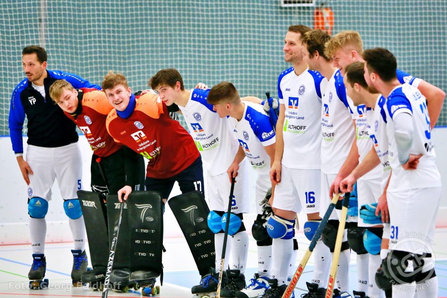 Alex Ober (Handbruch), Max Richter, Moritz Kreidewolf und Jonas Langenohl (beruflich) fehlten heute im Team, Yannick Peinke wärmte erkältungsbedingt nur die Auswechselbank. Also mussten es an diesem Nachmittag Fabian Selbach, Daniel Strieder und Yannik Lukassen zusammen mit den Youngstern Eric Krämer, Tom und Ben Kessens, Lasse und Ole Kaldasch und Routinier Julian Peinke mit dem RSC Darmstadt aufnehmen. Und sie machten ihre Sache gut, legten im ersten Abschnitt Tor um Tor vor und ließen sich auch nicht durch den Gegentreffer zum 3:1 aus der Ruhe bringen. Darmstadt war wie gewohnt technisch versiert und läuferisch stark, schaffte es aber nur selten, Druck auf die Blau-weißen aufzubauen und bei den wenigen gefährlichen Situationen vor dem IGR-Tor war Ben Kessens bei seinem Bundesligadebut zur Stelle. Der Pausenstand von 6:1 fiel vielleicht um ein oder zwei Tore zu hoch aus, entsprach aber den Spielanteilen.